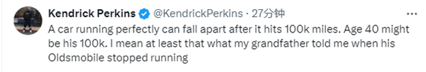 对于詹姆斯近期的表现,名嘴帕金斯吐槽:一辆车即使跑得再好,超过10万英里(约16万公里)后也可能开始出问题。而40岁或许就是詹姆斯的‘10万英里’。至少我爷爷是这么跟我说的,当时他的奥兹莫比尔突然就抛锚了。