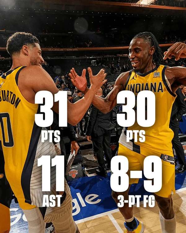 来源:360直播2025-05-22 22:34:49在NBA东部季后赛首轮激烈对决中,印第安纳步行者经过加时鏖战以138-135险胜纽约尼克斯,将系列赛大比分改写为1-0。本场比赛最大的亮点当属步行者后场双子星的惊艳发挥,他们用精准的投篮为球队奠定了胜局。