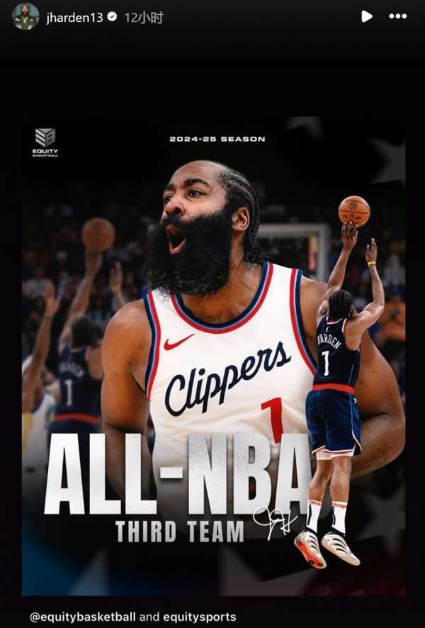 在官方结果揭晓后,哈登迅速通过个人Instagram账号转发了这一喜讯。这位十届全明星球员的社交媒体动态立即引发球迷热议,点赞数迅速突破百万。值得注意的是,哈登职业生涯已经9次入选最佳阵容,其中6次是一阵,展现了其持续的顶级竞争力。