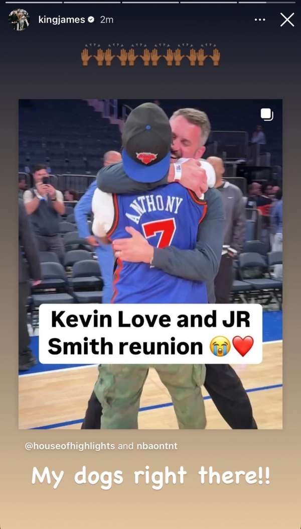 詹姆斯动情回忆骑士岁月 乐福JR赛后相拥引前队友点赞