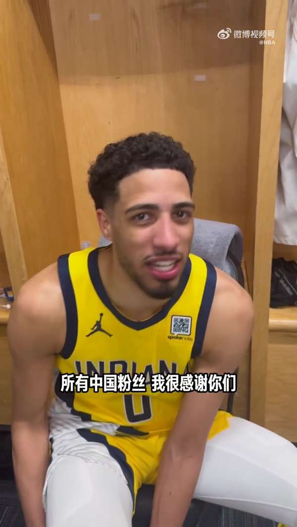 步行者球星哈利伯顿赛后大秀中文致谢中国球迷 透露与王鹤棣兄弟情