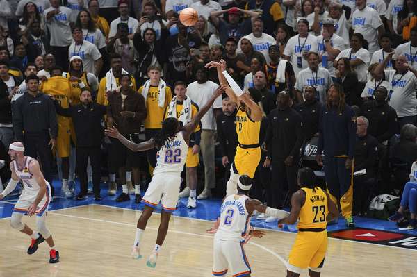 来源:360直播2025-06-06 23:39:03NBA总决赛首战在俄克拉荷马城上演惊人逆转,印第安纳步行者队在客场以111-110险胜俄克拉荷马雷霆。这场对决的戏剧性时刻出现在比赛最后关头,当家控卫泰瑞斯·哈利伯顿用一记致命的中距离跳投完成绝杀,带领球队实现了15分的惊天逆转。