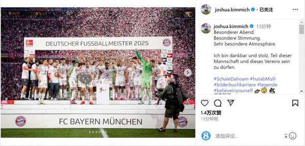 在社交媒体评论区,前拜仁队长拉姆留下"传承永续"的祝福,而现役门神诺伊尔则用三个冠军奖杯emoji强势应援。随着拜仁管理层宣布将于玛丽安广场举行传统冠军庆典,这支巴伐利亚豪门的赛季终章,正在书写新的传奇注脚。