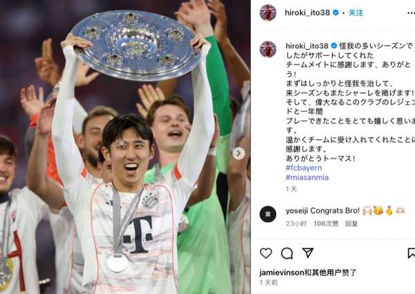 作为本赛季从斯图加特转会而来的新援,伊藤洋辉在社交平台发布夺冠感言时,特意插入与穆勒同框的训练照。这位2022年世界杯日本主力中卫坦言:"当我在更衣室局促不安时,是托马斯主动递来代表欢迎的巴伐利亚白肠。他教会我用幽默化解压力,这份温暖让我迅速融入球队。"据悉,穆勒曾在季前聚餐时用日语"おめでとう"(祝贺)调侃新队友,展现出俱乐部活化石特有的凝聚力。