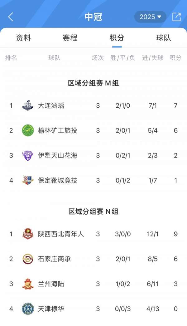 陕西西北青年人,大连涵瑀,榆林矿工旅投,石家庄商承,中冠联赛,榆林赛区