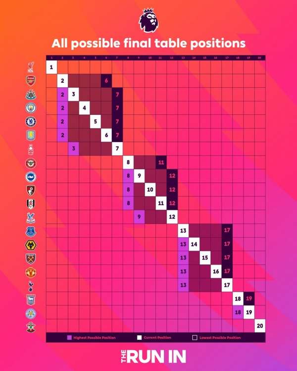 令人意外的是传统豪门曼联(Manchester United)与热刺(Tottenham Hotspur)的持续低迷。两队目前最高仅存理论可能攀升至第13位,这或将创下曼联英超时代最低排名纪录。保级区的争夺同样惨烈,伊普斯维奇(Ipswich Town)、莱斯特城(Leicester City)将为避免直接降级展开生死战,而南安普顿(Southampton)已确定垫底。