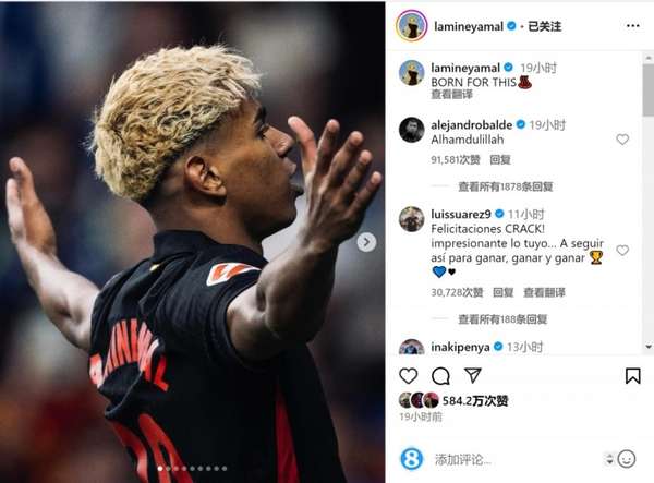 来源:360直播2025-05-17 14:52:16在诺坎普球场的聚光灯下,17岁的巴萨边锋亚马尔正书写着属于自己的篇章。这位拉玛西亚青训营出品的超新星近日在社交媒体发布进球庆祝图,配文"为此而生"的瞬间,立即收获前队友路易斯·苏亚雷斯的特别关注。目前效力巴甲格雷米奥的乌拉圭神锋用西班牙语留言:"祝贺你,出色的年轻人!你的成长轨迹令人瞩目…保持这样的节奏,胜利会接踵而至!"