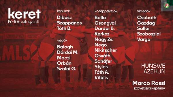 来源:360直播2025-05-21 11:50:35匈牙利男足主帅马尔科·罗西于5月21日公布了25人集训名单,备战6月6日与瑞典的布达佩斯主场较量及6月10日客场对阵阿塞拜疆的热身赛。值得关注的是,现效力于莱比锡的功勋门将彼得·古拉西已正式结束国脚生涯,这位33岁老将曾代表球队出战52场国际赛事。
