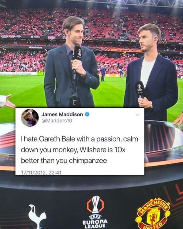 资深球迷发现,这场看似寻常的解说搭档背后,埋藏着一段跨越十二年的恩怨往事。档案数据显示,时年16岁的麦迪逊曾在2012年11月通过社交媒体平台公开发文:"我实在无法忍受加雷斯·贝尔,那只上蹿下跳的猴子!杰克·威尔希尔比这头猩猩强十倍不止。"这段青少年时期的激进言论,随着两人此次合作被重新推至舆论风口。
