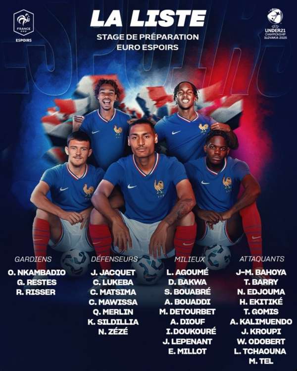 来源:360直播2025-05-22 11:14:31为备战2025年U21欧青赛,法国青年队主帅杰拉尔德-巴提科于5月22日公布了最新一期集训名单。这份29人的大名单囊括了多位效力于五大联赛的潜力新星,球员们将于下周一在法国足协训练基地克莱枫丹集结。