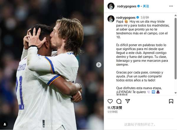 罗德里戈深情送别导师莫德里奇 皇马更衣室失去传奇核心