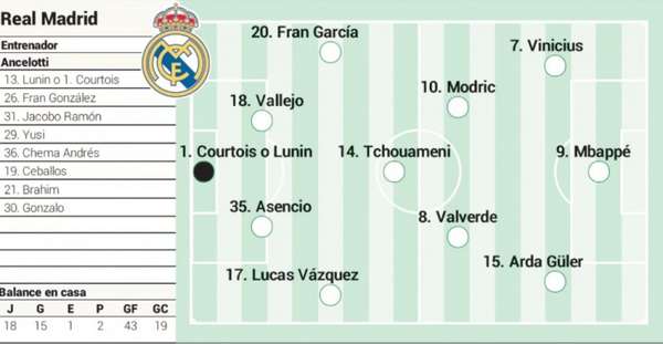 后防线上,卢宁与库尔图瓦将竞争门将位置。值得注意的是,巴列霍将与劳尔-阿森西奥搭档中卫组合,而巴斯克斯和弗兰-加西亚则可能分居两翼。这将是巴列霍在伯纳乌球场的告别演出,这位青训出身的后卫本赛季鲜有出场机会。