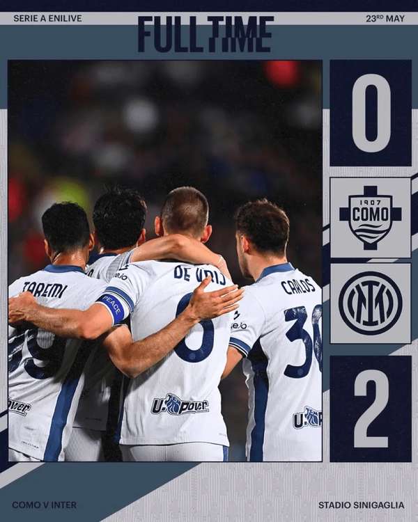 尽管国际米兰在同时进行的比赛中同样以2-0的比分战胜科莫,但由于此前积分差距,蓝黑军团最终以1分之差位居次席。比赛结束后,国际米兰官方第一时间通过社交媒体向对手表达敬意:"祝贺那不勒斯赢得本赛季意甲桂冠。"