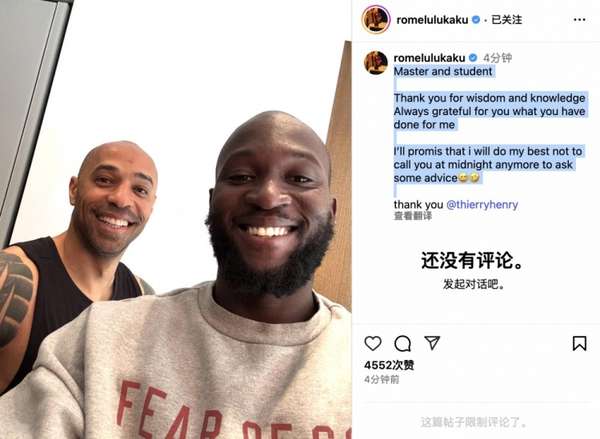 卢卡库深夜致谢恩师亨利 幽默承诺减少午夜求教