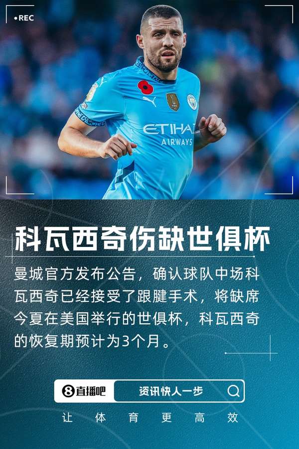 科瓦西奇跟腱手术休战三月,曼城确认缺席美国世俱杯