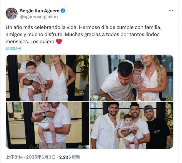 阿圭罗喜迎37岁生日:社媒晒家庭欢聚照,深情致谢全球粉丝