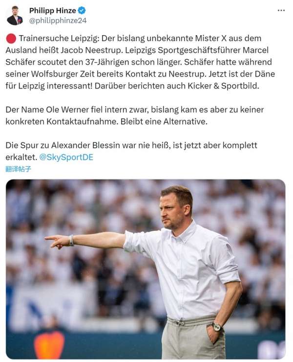 除内斯特鲁普外,莱比锡选帅名单上还曾出现奥勒-维尔纳的名字,但俱乐部至今尚未与其展开实质性谈判。而此前被媒体提及的布勒辛,目前已完全退出莱比锡新帅的竞争行列。