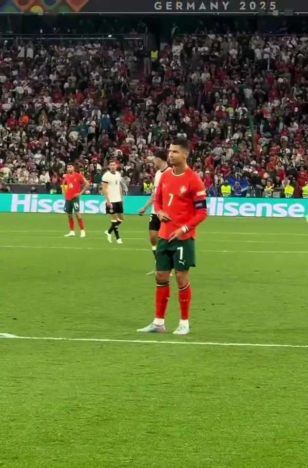 来源:360直播2025-06-05 17:38:30欧国联半决赛在安联球场上演激烈对决,葡萄牙队长C罗用场上表现和场下互动展现了巨星风采。当德国球迷集体呼喊梅西名字试图干扰时,这位五届金球奖得主展现出不俗的音乐感——他随着球迷的声浪有节奏地摇头晃脑,双臂打拍应和,最后以热烈鼓掌完成这出即兴表演。