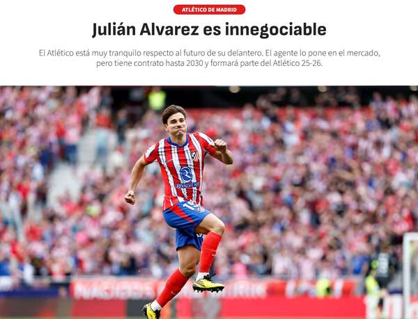 来源:360直播2025-06-05 18:13:1006月05日,《阿斯报》资深记者Eduardo Burgos披露了关于马德里竞技队核心球员阿尔瓦雷斯的续约细节。这位25岁的阿根廷前锋与俱乐部签有长达5年的合约,被主教练西蒙尼视为更衣室不可或缺的关键人物。